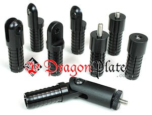 DragonPlate lightweight tube connectors provide an easy and robust method for connecting either our 0.75" roll-wrapped or braided carbon fiber tubes together to form lightweight rigid structures. Using these aluminum connectors, our 0.75" carbon fiber tubes can be connected to form much longer disassemblable tubes and complex 3D structures. Both 2D and 3D joints are possible. The connectors are adhesively bonded into the ends of the carbon fiber tubes using an epoxy (We recommend Scotch-Weld 2216 adhesive).